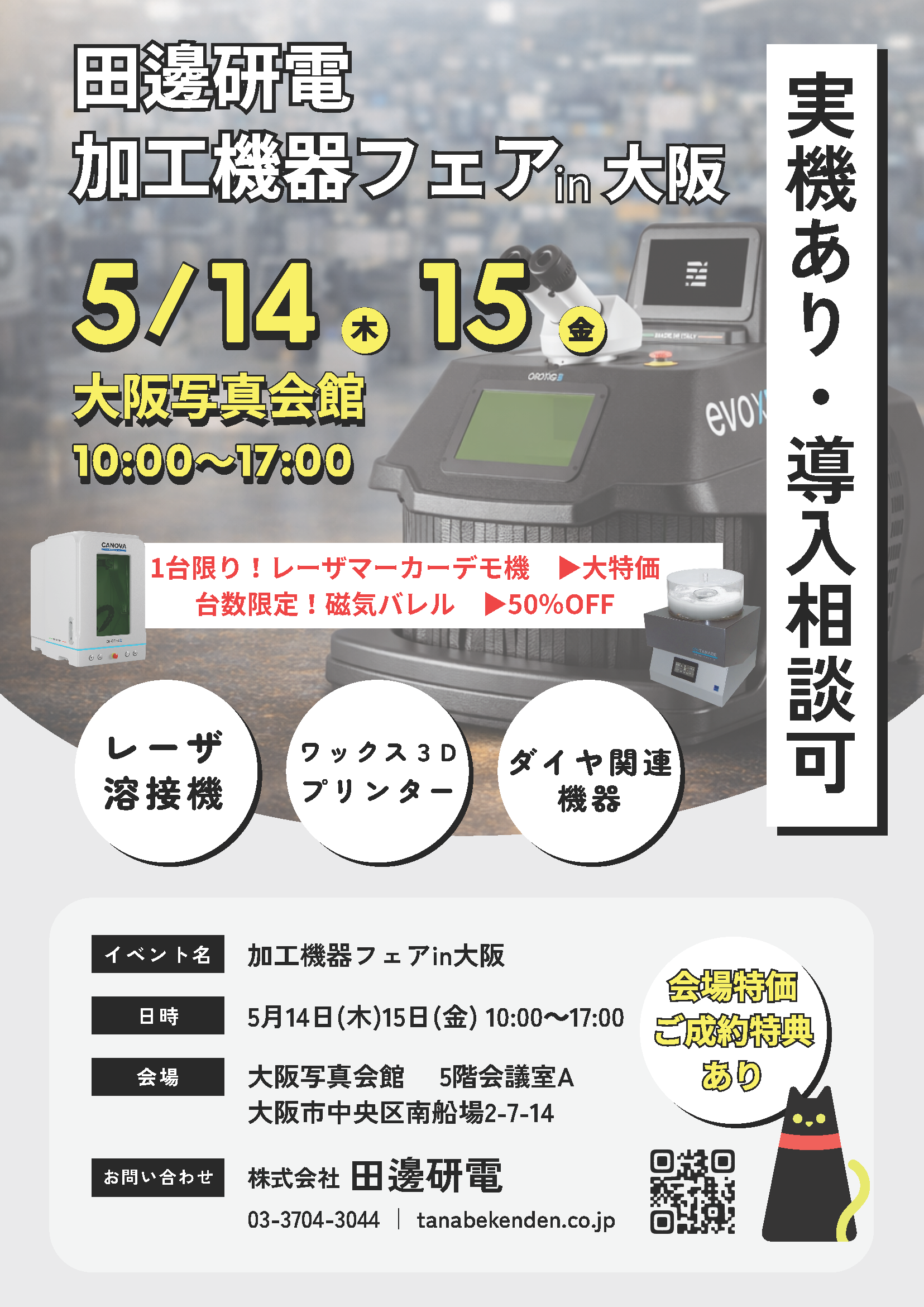 レーザ溶接機やレーザ彫刻機、ダイヤ関連機器など実機でご覧いただける展示会です。